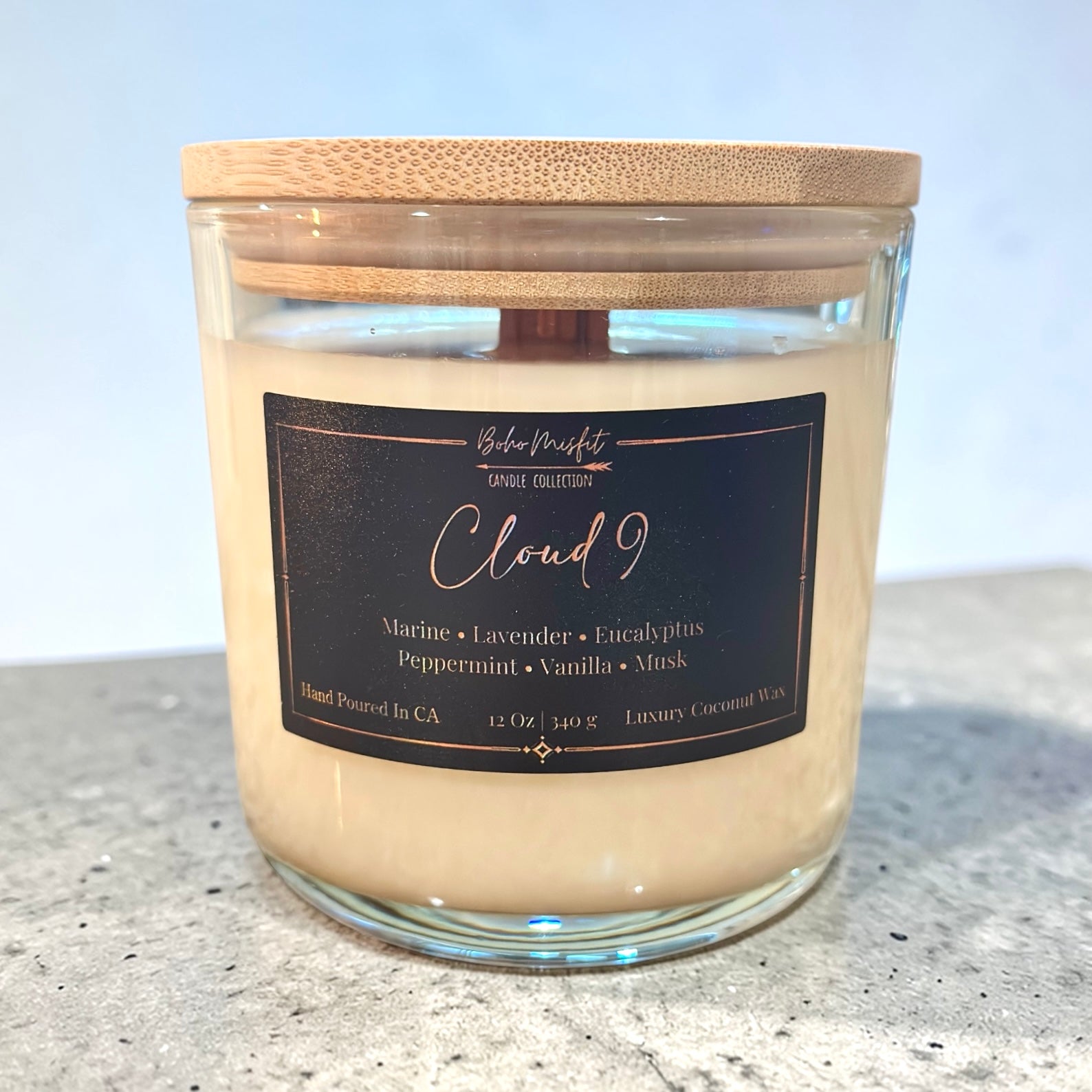 Float into pure serenity with Cloud 9, a soothing yet refreshing fragrance designed to calm the mind and elevate the spirit. This exclusive blend opens with crisp marine air and cool eucalyptus, layered with soft lavender and refreshing peppermint for a clean, spa-like experience. Warm notes of vanilla and sensual musk settle in, creating a smooth, comforting finish that feels like drifting into perfect peace.