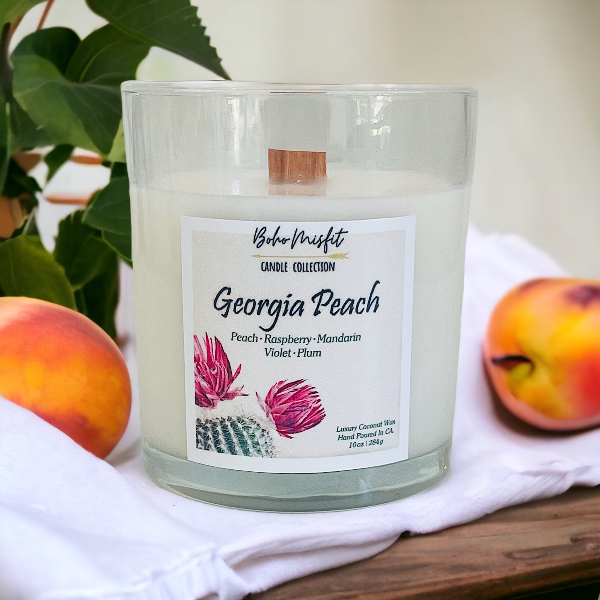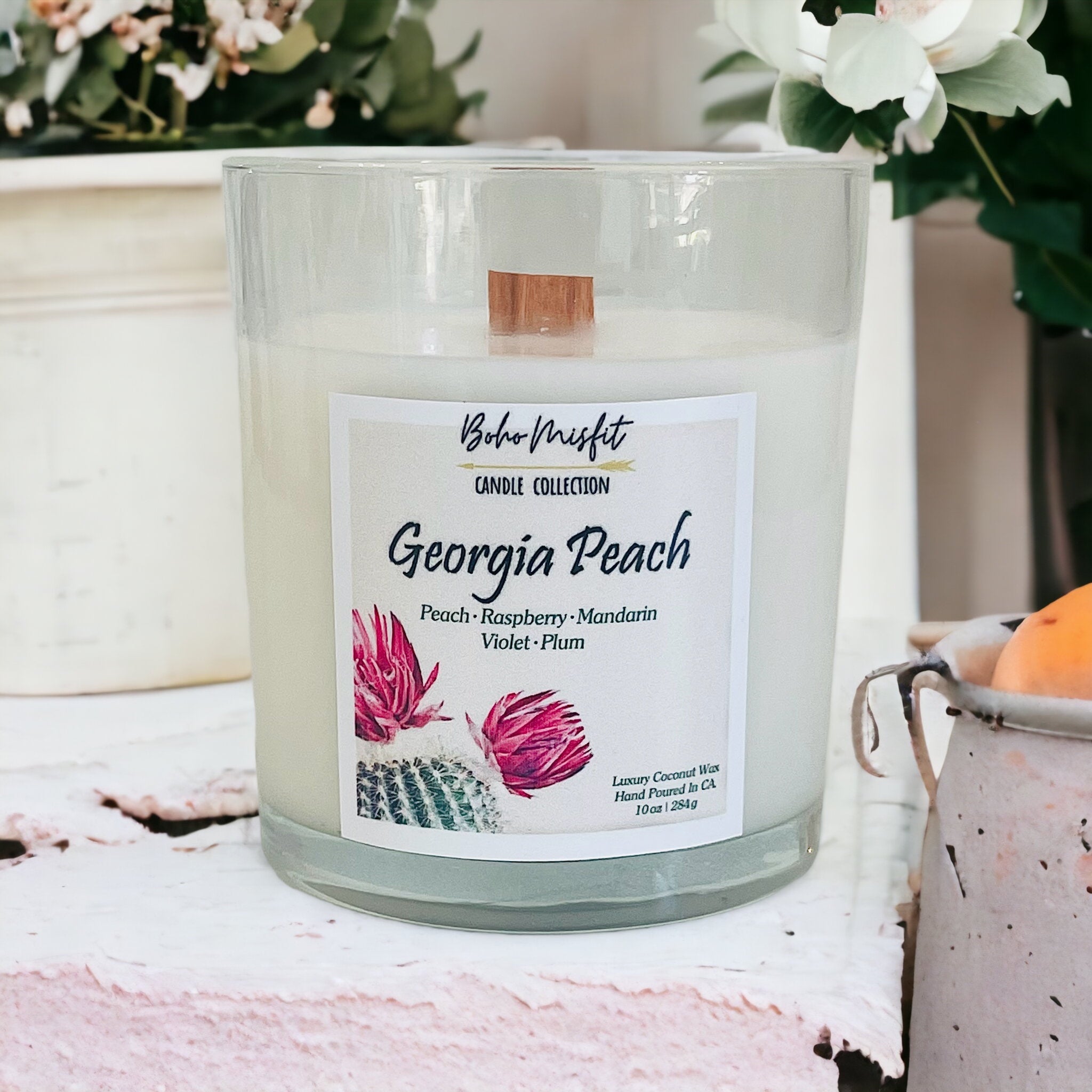 The aroma of fresh peach blends perfectly with a hint of the tropics to create this rich, sweet, mouthwatering scent.