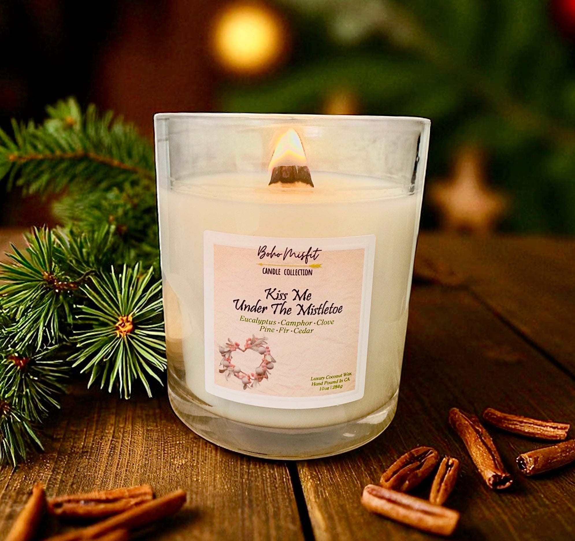 Fall in love with Mistletoe, a perfectly festive holiday fragrance oil that fans of fresh woodsy scents will find appealing any time of year. It begins with top notes of invigorating eucalyptus and camphor, while middle notes of pine and fir are reinforced by a touch of spiced clove. Cedarwood and patchouli in the base ground this cheery scent. Bring the essence of the holidays any time of year with Mistletoe candles and wax melts.