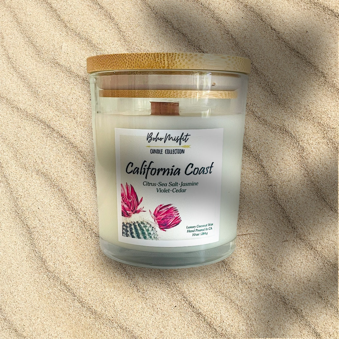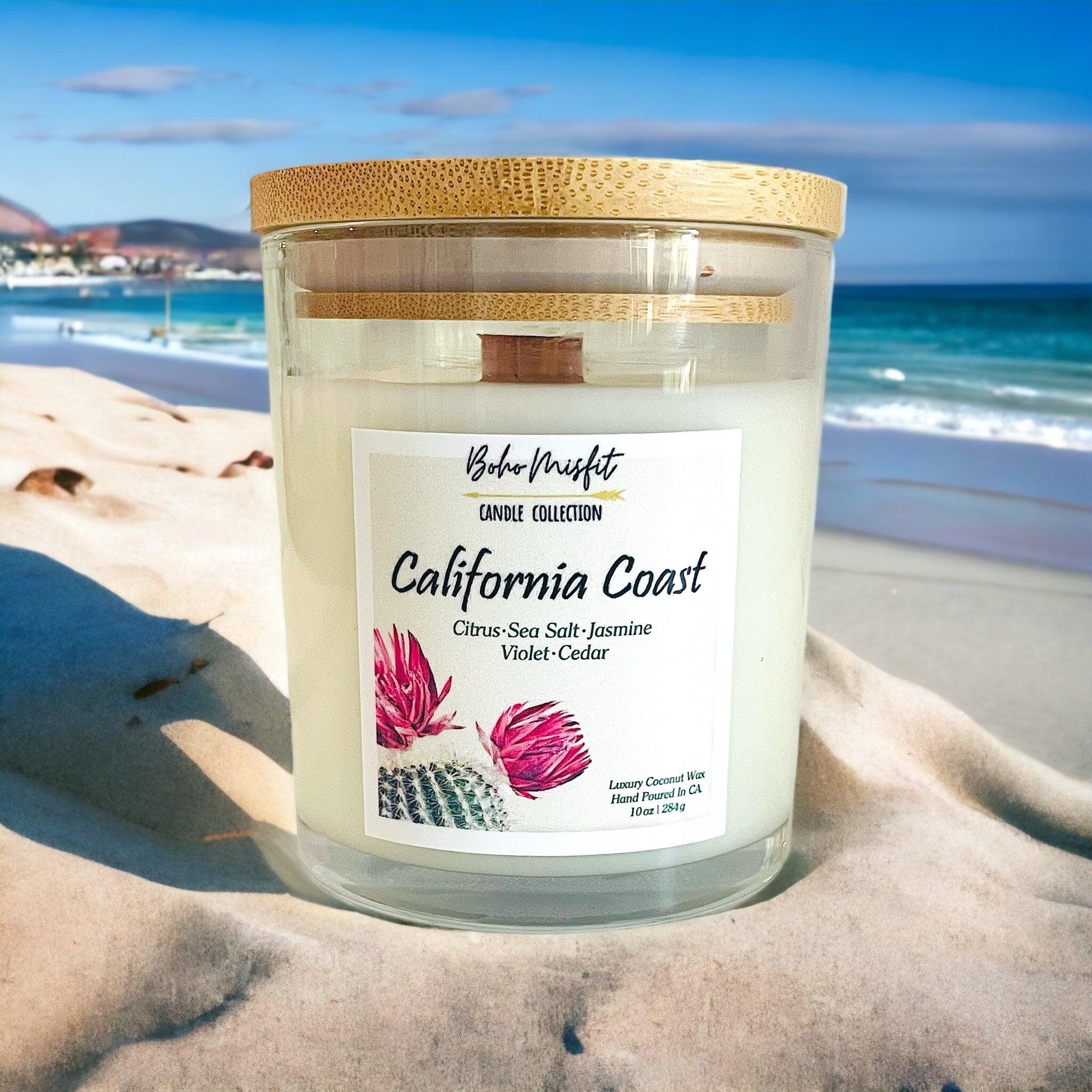 Immerse yourself in the aromas of waves crashing onto a rocky coastline with a storm brewing in the distance. Our California Coast fragrance oil evokes the churn of the sea, wrapping the water, sand, and salt together into a clean and ozonic scent. Top notes of lemon, orange, and fresh ozone give way to a heart of briny sea salt and a hint of jasmine. Powder and light musk balance the woody violet and cedar in the base.