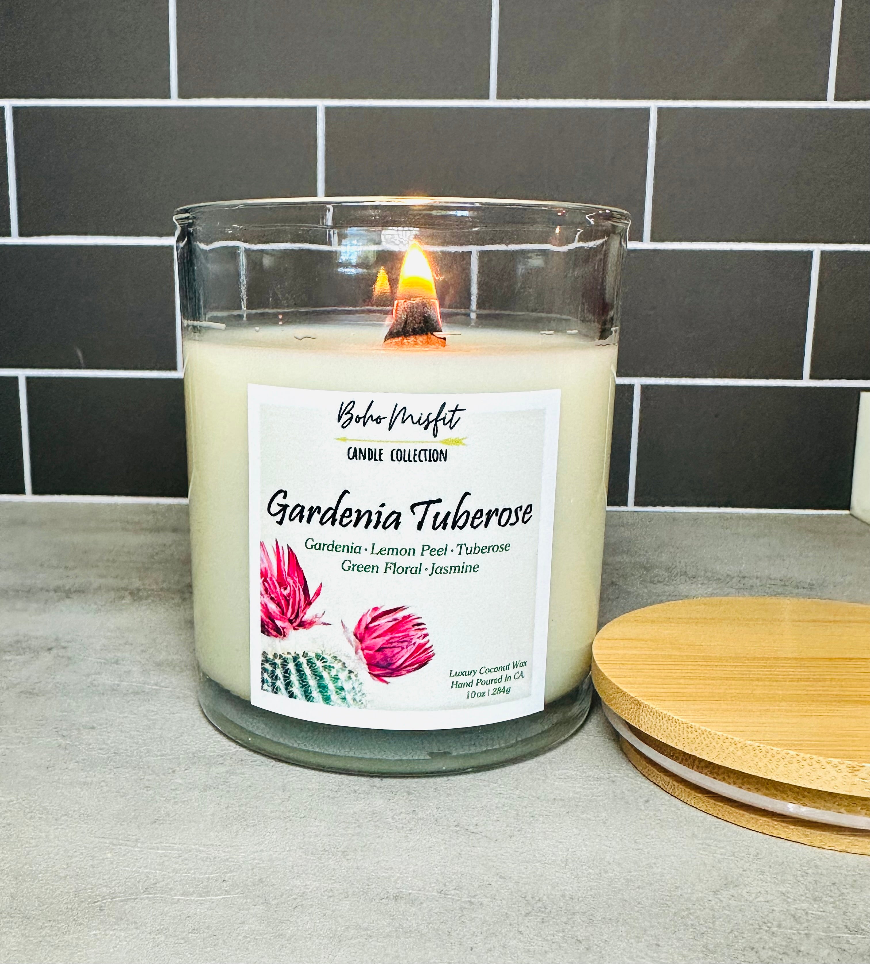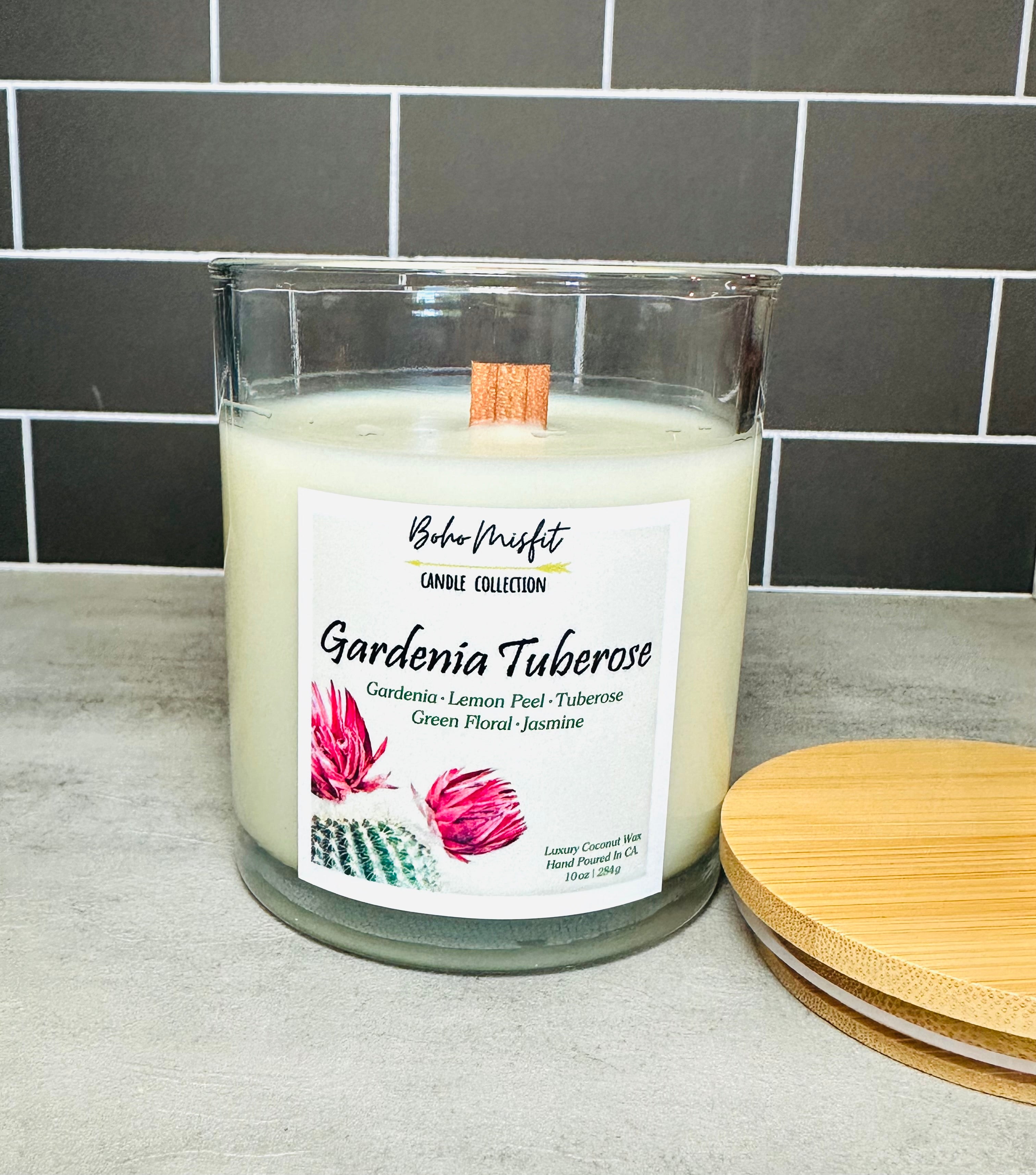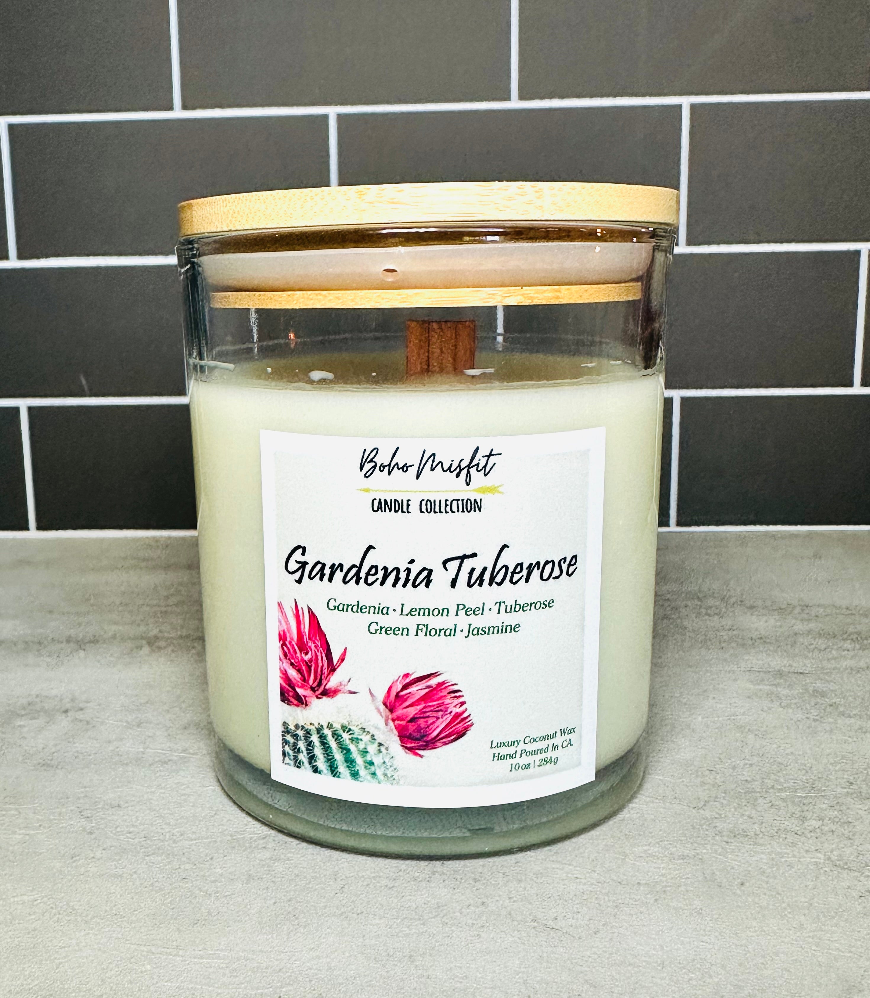 Breathe in the fragrant accords of tropical white florals in full bloom with Gardenia Tuberose fragrance oil. This dreamy scent begins with top notes of gardenia and lemon peel as it gives way to a blossoming heart of tuberose, jasmine, and green florals. A soft powdery finish gives depth to this earthy floral.